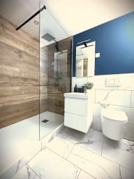 - d'une salle de bain avec grande douche à l'italienne, machine à laver et WC suspendus ;