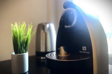 - d'une cuisine séparée et équipée avec notamment lave-linge, four micro-ondes, machine à café type Nespresso, bouilloire etc. ;